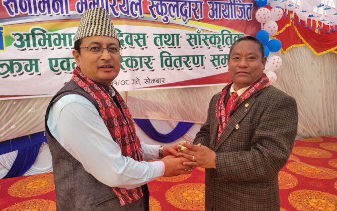 बुटवल । सैनामैना नगरपालिकाको वार्ड नम्वर १ आदर्श पथ स्थित सैनामैना मेमोरियल स्कुलले सोमबार २२ औं अभिभावक दिवस तथा मेमोरियल डान्स स्टारको फाईनल प्रतियोगिता सम्पन्न गरेको छ। प्रतियोगिताको एक कार्यक्रमका बीच सैनामैना नगरपालिकाका प्रमुख फडेन्द्र...
