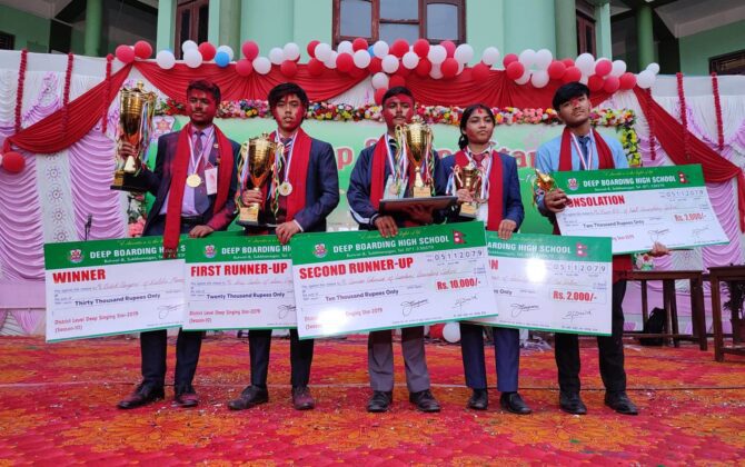 पुरा पढ्नुहोसबुटवल । बुटवल–८, सुख्खानगरमा अवस्थित दीप बोर्डिङ हाई स्कुलले आयोजना गरेको अन्तर मा।वि। दीप गायन तारा प्रतियोगितामा कालिका मानवज्ञान मा।वि।का विद्यार्थी विवेक पङ्गेनी दीप गायन तारा बन्न सफल भएका छन् । त्यसैगरी एम्स इङ्ग्लिश सेकेन्डरी...