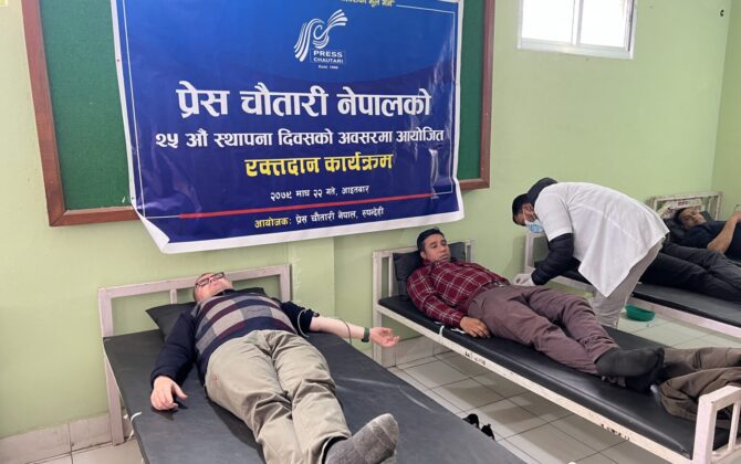 पुरा पढ्नुहोसप्रेस चौतारी नेपालले विभिन्न कार्यक्रम गरी आज २५ औं स्थापना दिवस मनउंदै छ । पे्रस चौतारी रुपन्देहले स्थापना दिवसको अवसरमा बुटवलमा आज रक्तदान कार्यक्रम गरेको छ ।पे्रस चौतारी नेपाल नेकपा एमाले निकट पत्रकारहरुको संगठन हो...