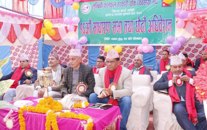 लुम्बिनी फलफुल तथा तरकारी थोक व्यवसायी संघको १६ औ साधारण सभा सम्पन्न बुटवल, पुस । लुम्बिनी फलफुल तथा तरकारी थोक व्यवसायी संघ रुपन्देहीको १६ औ बार्षिक साधारण सभा तथा छैठौं अधिवेसन बुटवलमा भएको छ । साधारण...